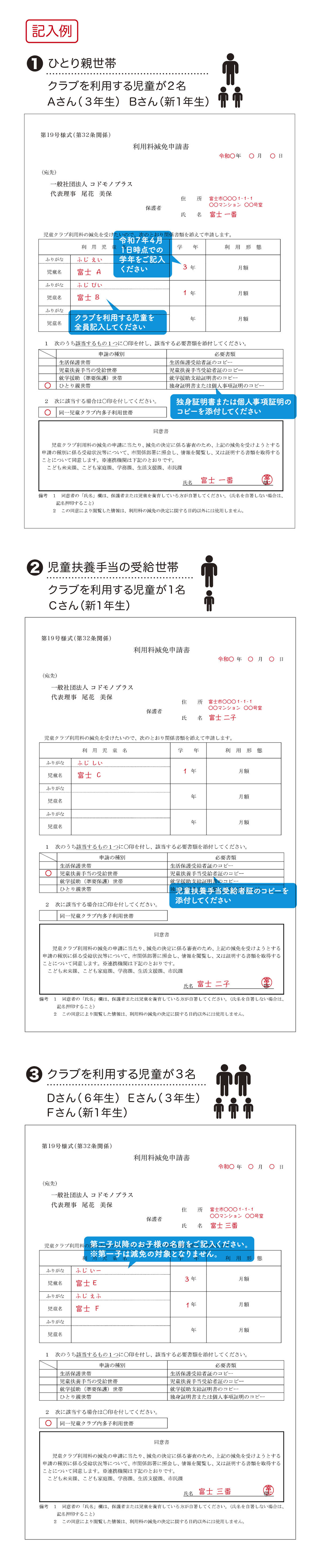 ※1 … すでに兄または姉が児童クラブを利用している場合でも上記書類がすべて必要となります。